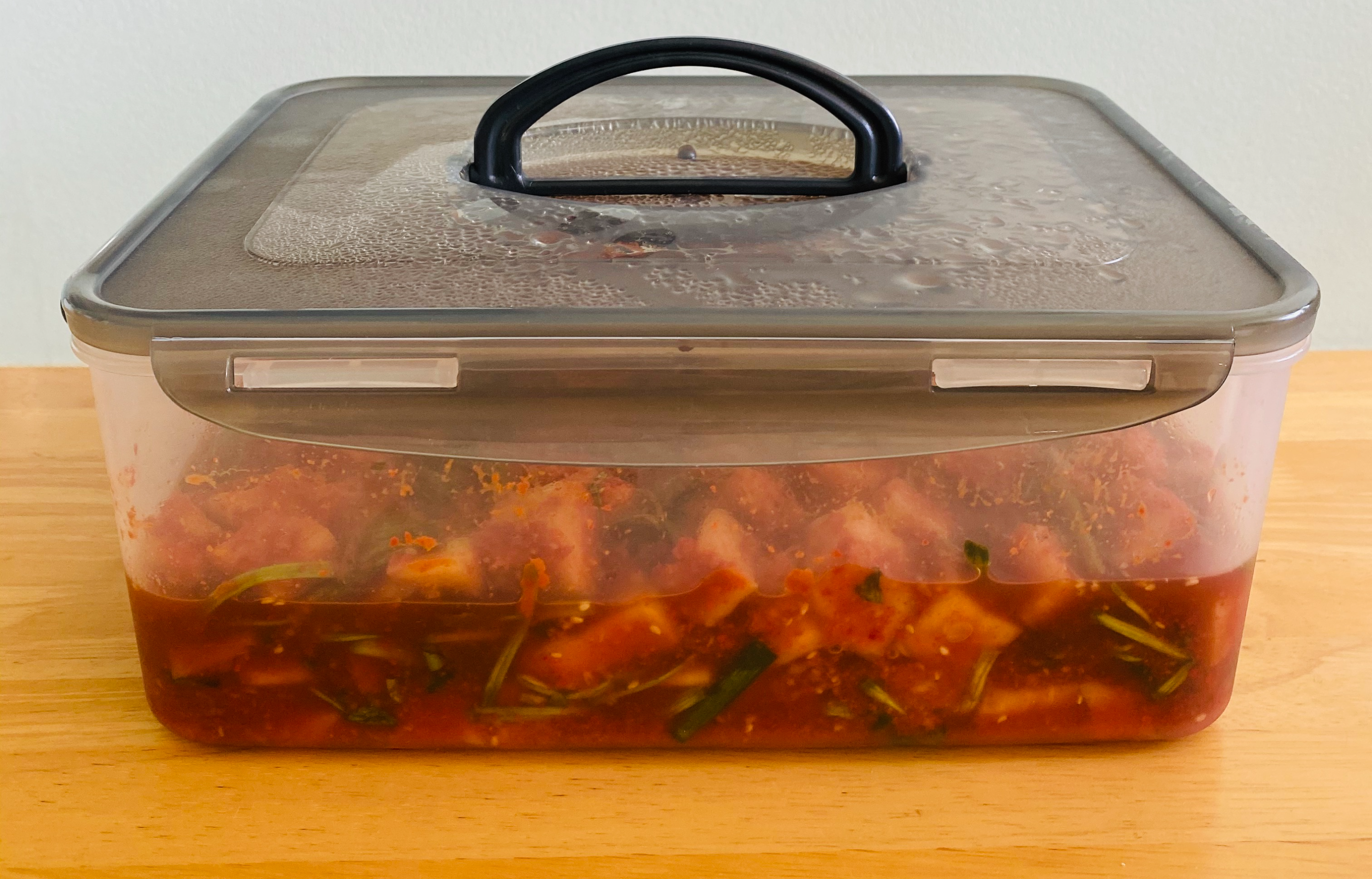 6. 통에 담고 실온데 2일 정도 둔 후 냉장고에 넣어 보관합니다.