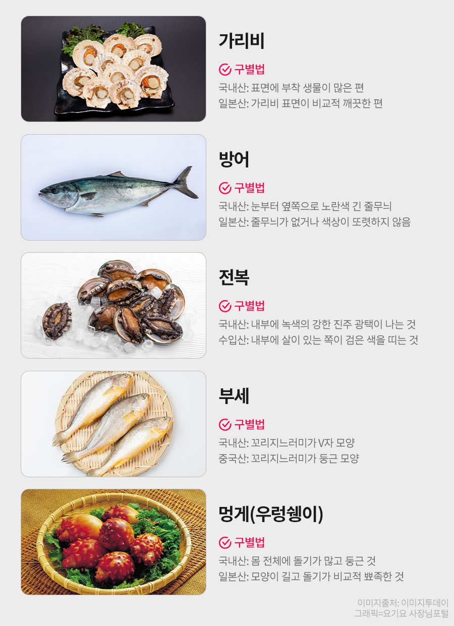 (가리비, 전복, 부세, 우렁쉥이(멍게), 방어 추가)