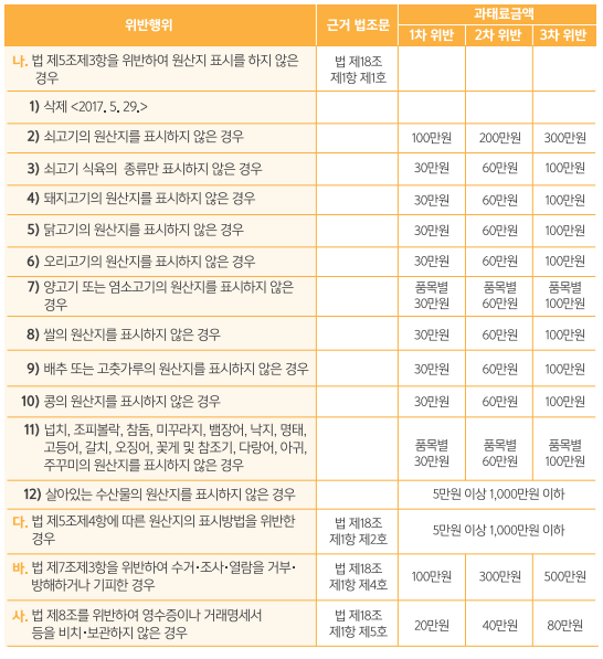 원산지 위반업체 공표