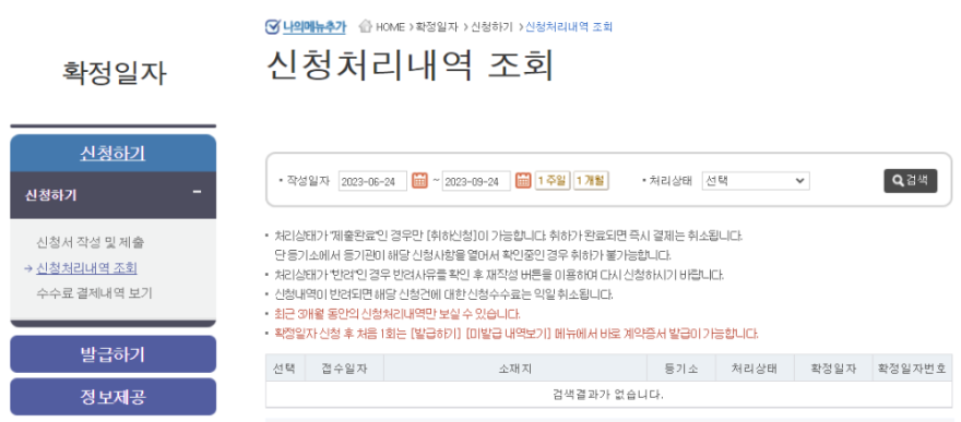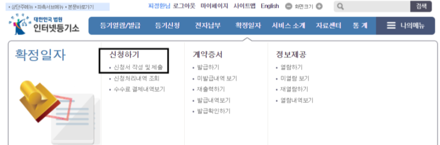 3) 확정일자 -> 신청서 작성 및 제출하기 클릭하여 작성한다.